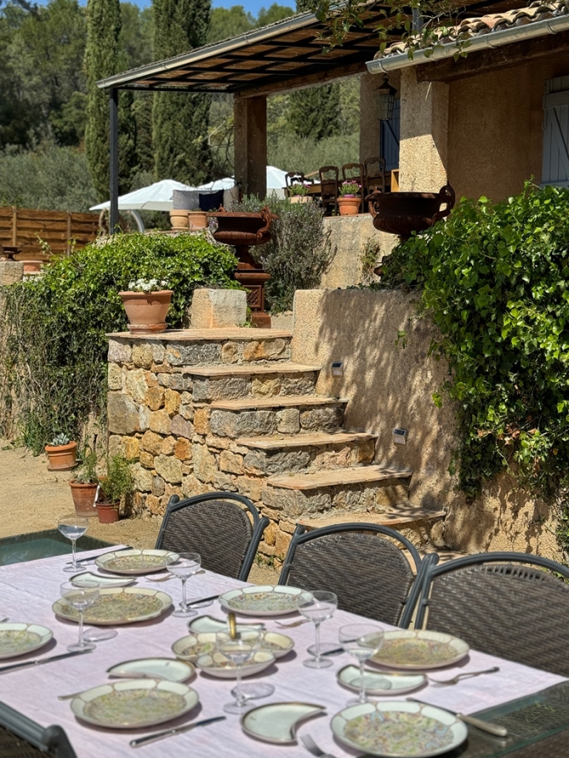 De ProvenceSuperb country house with every comfort and an unbelievable viewsPrivate swimming pool, boules pitch, table tennis and multiple terraces and dining spots. Full laundry room with large Fisher & Paykel fridge and freezer and a 140 bottle wine cooler.Parking for 4 cars.Snug room with library and large TV. Office with printer and super fast fibre broadband. Wifi throughout and air conditioning.10 to 12 guests, 6 bedrooms, 2 bathroomsOne of the finest properties in the Var. This charming country house has some of the best views around, while still being less than 2 km away from Cotignac. The spaceDe ProvenceIt is set on a plot of 5,000 m2 in terraced areas, with an olive grove and vineyard.2 minutes (by car) from the idyllic Provencal village of Cotignac (weekly market all year round, flea markets, concerts and open-air film festival during the holiday seasons and 40 minutes from Lac Ste Croix and the Gorges du Verdon. Just over an hour from St. Tropez and the rest of the Riviera. The house offers a surface of more than 350m2 on several levels with very good size spaces. Inside spacesA beautiful double height very large sitting room with 2 doors directly onto the main dining terrace, with its beautiful 12 seater country table and outstanding views.A fully equipped kitchen with a Sage dual boiler espresso machine, magi mix, Kitchen Aid to name but a few.There is a relaxing library and sung area with its own terrace. Large screen TV and international TV channels.Off the snug is an office with it’s own private terrace, a desk, printer and super fast fibre internet (1600mbs).There are 6 bedrooms classically decorated and all with a mixture of queen and king beds.All rooms have hanging wardrobe and draw space as well as wifi.The exterior For your private use : boules pitch, large swimming pool, tennis table and 2.5 acres of garden. There are multiple terraces to relax, dine or stargaze;• Main covered dining terrace (off the sitting room) with a 12 seater table• Pool terrace with relaxing sofas• Star gazing terrace with a dining table and open skies above• Vineyard terrace which is perfect for sun downers• Snug terrace to relax and read• Office terrace to contemplate the next dig dealThere is a dedicate outdoor kitchen space with a Big Green Egg, Asado grill and a gas plancha. The swimming pool (with outstanding views), measures 10mx5m, and is located directly off the main dining terrace and house. With 8 exotic wood sun loungers and parasols, this is the ultimate place to spend the day. There is a pool CCTV and alarm system that allows the safety of the youngest. The pool can be heated on request. There is private drive and parking for upto 4 cars.A monitored CCTV system will ensure security.There is a baby cot, if required.