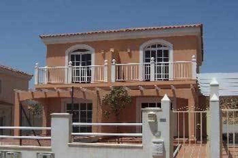A lovely villa just a stone’s throw from the 18th tee at Fuerteventura’s golf course, and enjoying superb sea and golf views. Ref: Ref: 7967 This newly built two storey villa has 3 bedrooms. It is on the Fuerteventura Golf Course complex adjacent to the small town of Caleta de Fuste on the east side of the Island. The villa is centrally located for exploring the whole island - 15 mins from the airport, 2kms from the very safe beach and marina/port area where a wide variety of watersports are available, 2kms from Caleta’s wide range of bars and restaurants and just 200 metres from the 18th tee of the golf course. Guests at the villa may use most of the facilities offered at the Elba Palace Golf Hotel i.e. restaurants, bars, gym facilities, tennis courts etc. There is also a courtesy bus running from the Hotel to the Commercial Centre (supermarkets, shops, bowling, cinema and many restaurants) and the town of Caleta. Villa Golf y Mar3 twin bedrooms, plus a sofabed in the living room and the property can sleep a maximum of 8 people. Two bath/shower rooms. Fully equipped modern kitchen with oven and hob, dishwasher, washing machine and fridge freezer. Pleasantly decorated living/dining room with TV/DVD and CD player. Large selection of books and games for guests use. The villa has a large professionally landscaped garden with a variety of local palms and cactus, The garden offers superb views across the Golf Course to the sea beyond. There are also two balconies and a large terrace with dining furniture for enjoying those long warm evenings.