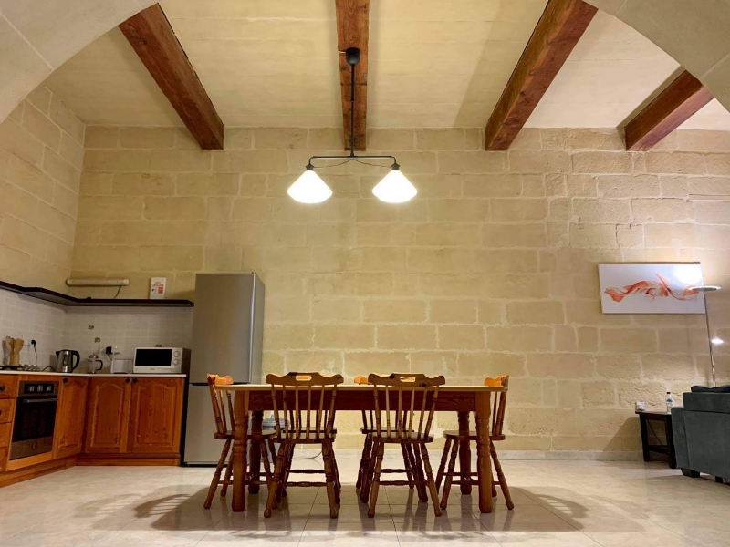Mejda Farmhouse is a 2 bed roomed house sleeping a maximum of 6 persons. Large pool-side area embellished with a pool side shower, relaxing sun loungers, gas barbecue and alfresco dining facilities. One enters an open plan lounge, dining and kitchen. The lounge part consists of a comfortable couch and there is a cable TV. The dining area consists of a rustic style table that accommodates 6 persons. Large comfortable kitchen with a 4 hob cooking unit, a large oven, a large fridge/freezer and a toaster. In the cupboards one finds enough cooking pans and cutlery that cover necessary for 6 persons. Bedroom 1 with 1 double bed and 1 single bed with ensuite. Bedroom 2 with 3 single beds and has an adjoining private bathroom equipped with an automatic washing machine. The bathroom’s facilities include a WC, shower, vanity unit.